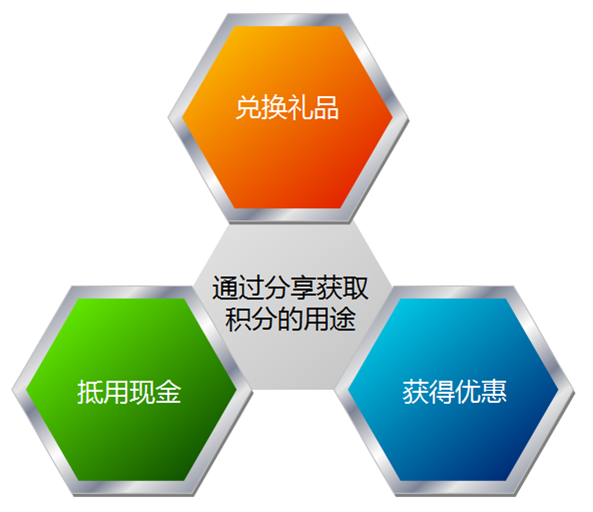 粉丝通过分享获取积分,积分会累积到会员卡中,凭借积分可以兑换奖品,在商城内作为抵用券抵用现金,这种方式大大提高了粉丝分享传播信息的积极性。
