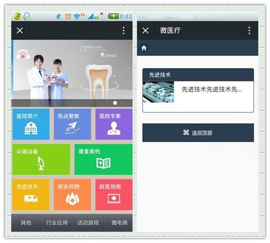 医疗行业微信应用,包括医院各项业务介绍,挂号预约等功能