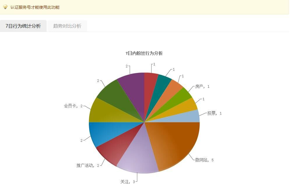 饼状统计图,数据分析一目了然。最近7日粉丝行为请求数,模块功能占比轻松查看,并有模块详情分析。