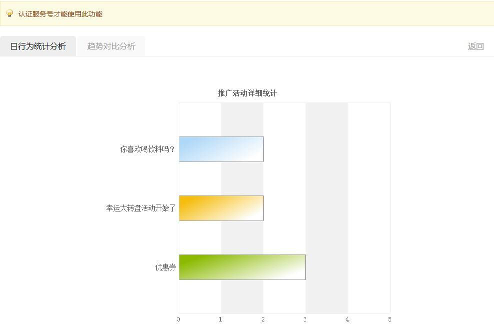 统计微信公众号的粉丝关注情况,根据统计对相关推广营销活动效果对相关市场行为作出相应调整,从一定程度上实现了对市场的监控与及时应对。