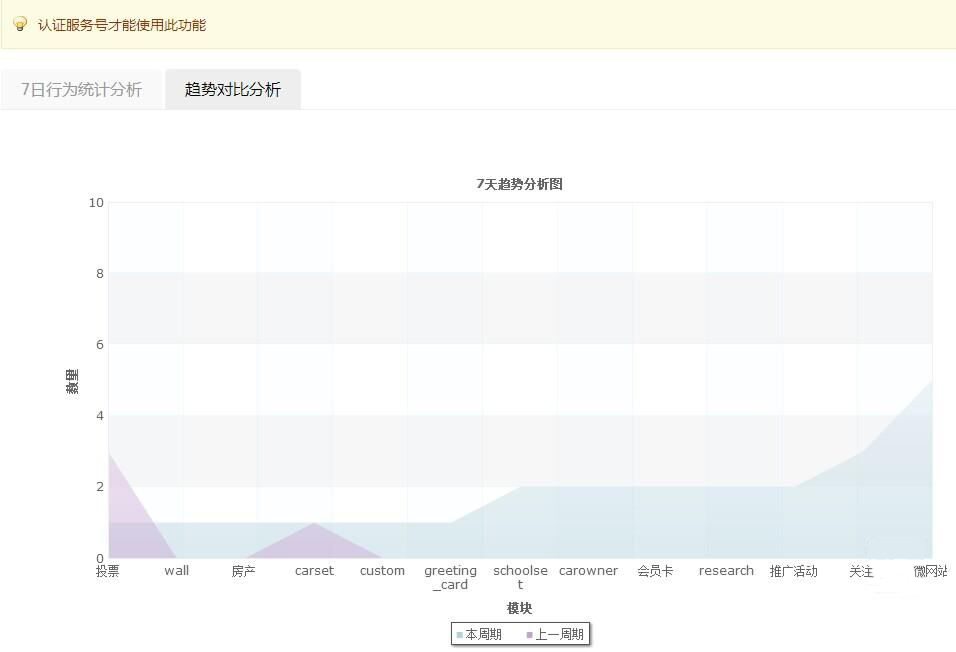 一周内粉丝查看功能模块对比,同时还可与上周粉丝行为作出分析对比,为商家提供粉丝行为最新动态,商家可以更有效针对卖家需求营销推广。