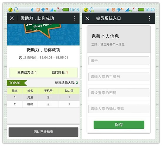 在应用中商家可以设计活动规则,活动起始时间,活动宣传图片广告,广告图片中可以注明分享的越多就会得到某一奖品,通过这种方式刺激粉丝去转发分享此活动信息,粉丝可以在微信中看到自己的排名及所有参与此活动的人员,商家在活动结束后可以根据分享排名来发奖品。