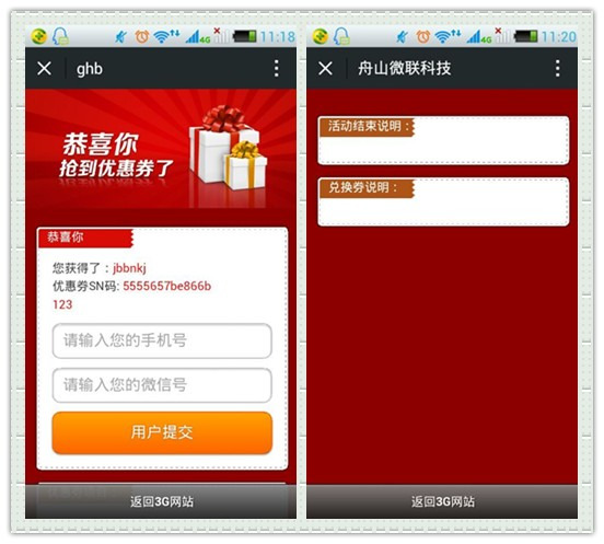 3【优惠券中奖了如何使用呢】:优惠券中奖后会得到如图1所示页面,粉丝可以看到自己中奖的sn码,还有需要输入的手机号和微信号,输入完成后中奖信息就会出现在创建活动商家后台,而且中奖界面会出现如图2所示,有您输入的微信号和手机号码,下面还会出现一个输入框商家输入兑奖密码,这个兑奖密码是什么样的场景下使用呢?例如粉丝去线下商家店铺抵现金使用,这时就需要商家来输入这个兑奖密码以验证优惠券,也就完成了优惠券的使用。