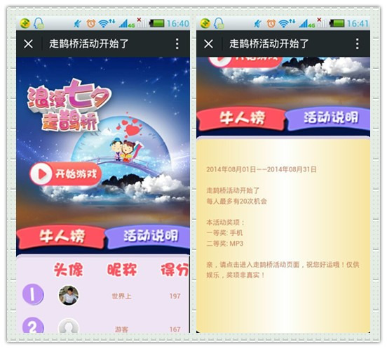 走鹊桥游戏,是七夕节推出的一个节日应用