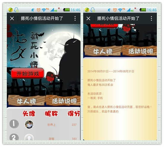 在微联后台点击【微活动】【摁死小情侣】【新增摁死小情侣活动】即可进入添加界面: